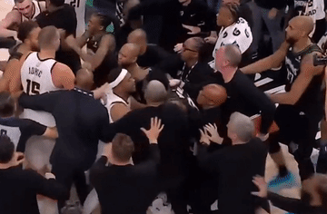 也不止对手没想到麦克丹尼尔斯来这么一招,队友也没想到啊,那边爆发冲突了,这边队友凯尔-安德森和多苏穆还在击掌庆祝胜利,因为没想到这比赛居然还没打完。