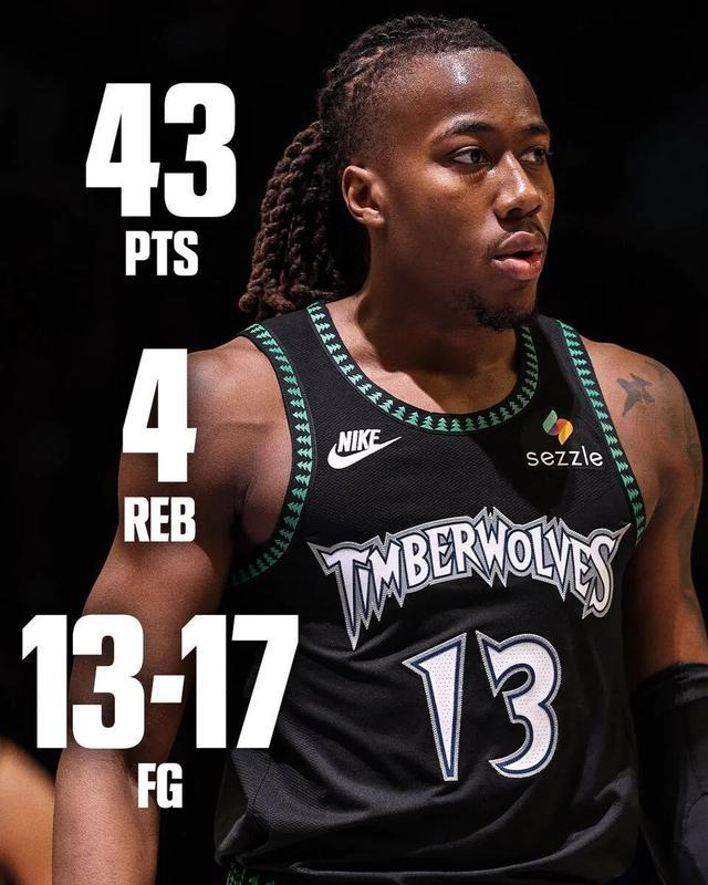 替补砍下43分,17投13中,3分球5投5中,罚球12中12,就是一整个防不住啊。