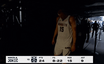 全场约基奇打了41分钟,22投8中,3分球3投0中,拿到了24分15板9助。