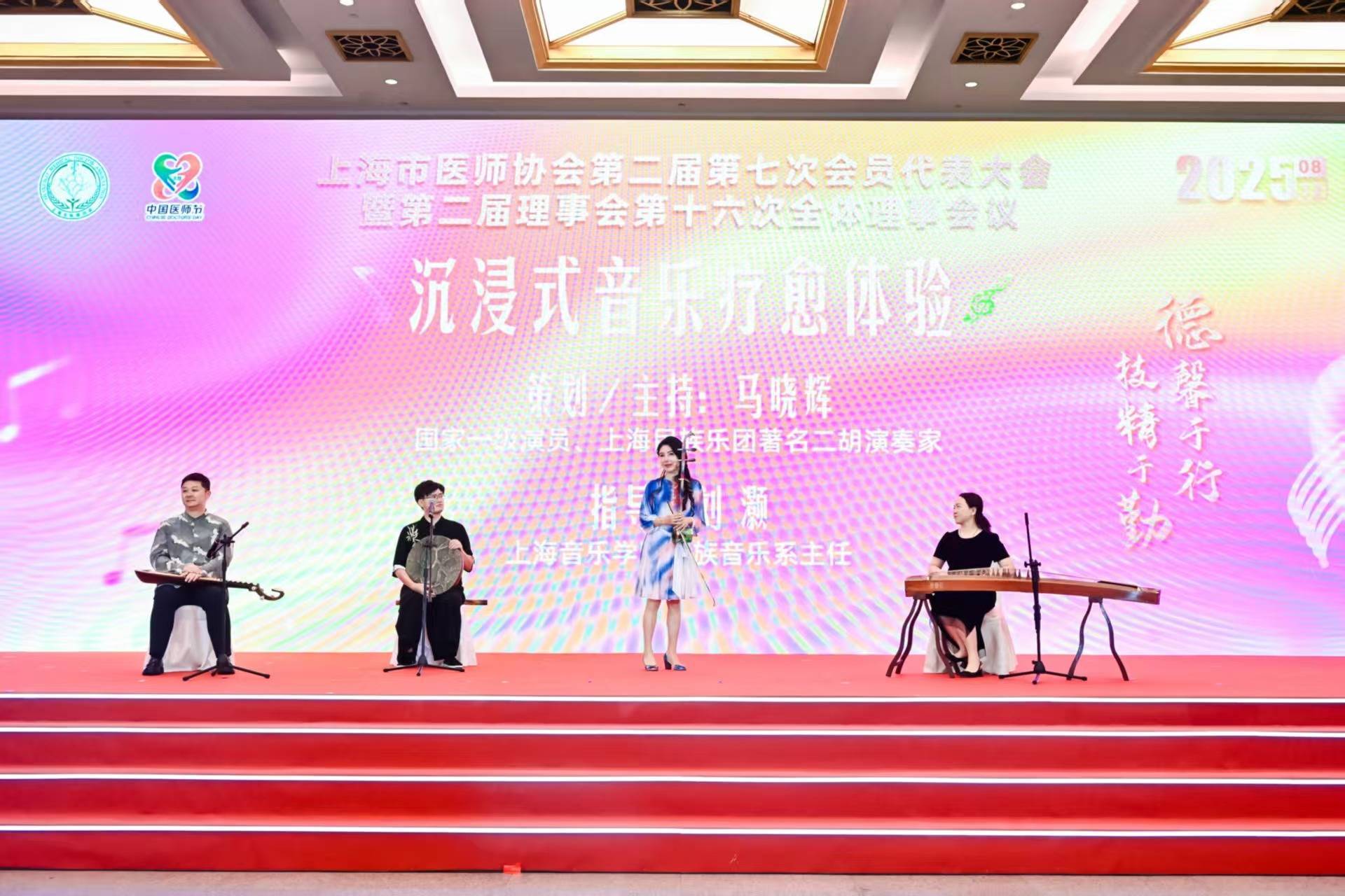 新华社上海10月10日电(记者袁全)8月份的中国医师节,一场特别的音乐会在上海举行——来自上海市精神卫生中心的医学专家携手上海民族乐团著名二胡独奏家、国家一级演员马晓辉精心策划并呈现了一场沉浸式音乐疗愈体验。他们以音乐为媒介,为在场的医师们开启了一段心灵之旅。同日,上海市医师协会正式成立音乐与艺术疗愈专业委员会,成为国内在相关领域的首次尝试。